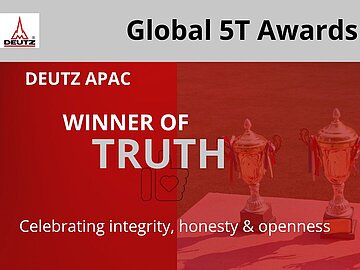 We are proud to announce that our team at DEUTZ Asia Pacific has been honoured with the Global 5T Award for ๐๐๐๐๐. Congratulations to all. We are proud of our people who are the key to every success of our organization.
