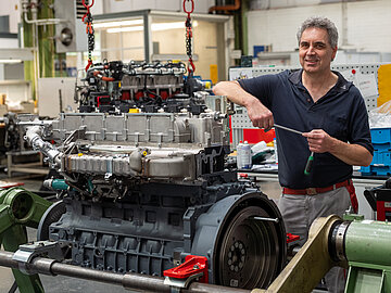 Le TCG 7.8 H2 est basé sur les moteurs diesel DEUTZ qui ont fait leurs preuves des millions de fois - sauf qu'il brûle de l'hydrogène. Le moteur à six cylindres offre une capacité dynamique maximale et peut gérer sans effort les profils de charge les plus divers. Contrairement à la pile à combustible, il est, comme tous les moteurs DEUTZ, résistant aux températures extrêmes, aux vibrations, au rayonnement solaire et à la poussière. Et la bonne nouvelle, c'est que cette solution d'entraînement innovante est déjà produite en série.