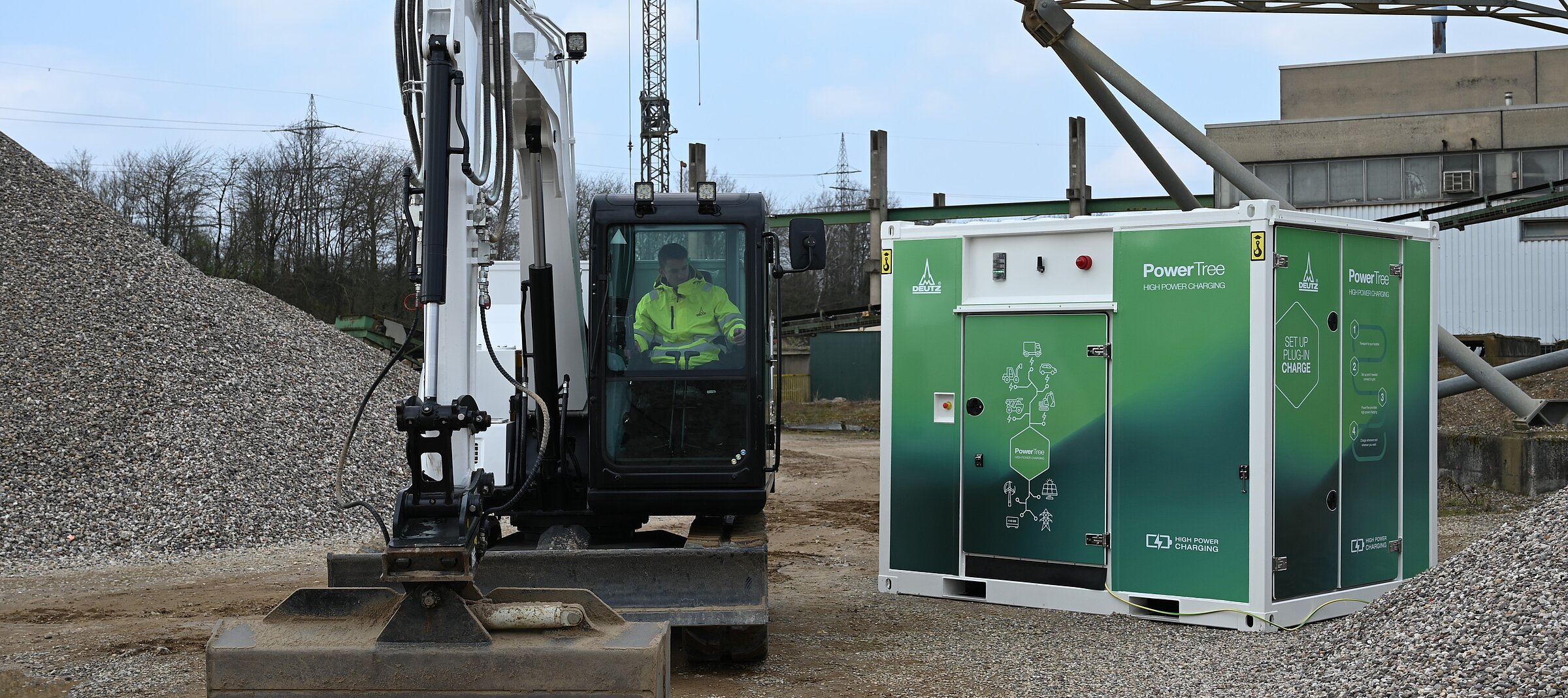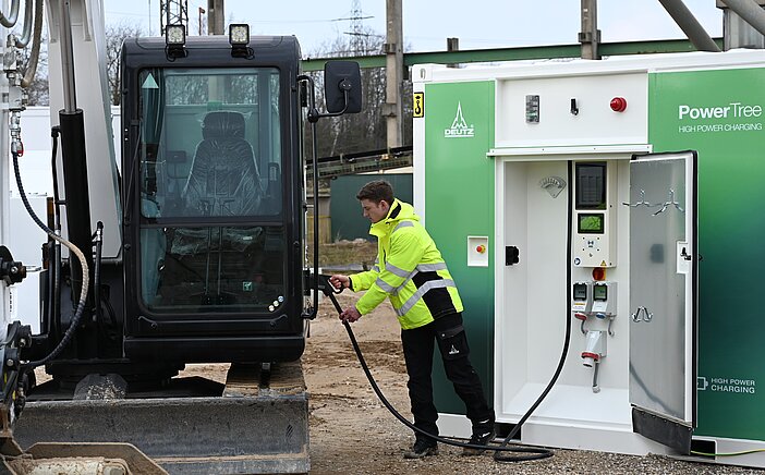 Der PowerTree von DEUTZ ist die erste steckerfertige, flexible Schnellladestation. Er ist ein mobiles und robustes System, um Maschinen schnell und sicher aufzuladen.